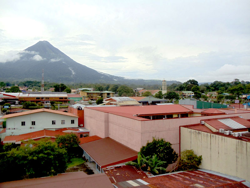 La Fortuna is situated 16 miles (26 km) from Ciudad Quesada and 75 miles (120 km) from San José. The drive from San José takes around 2.5 to 3 hours. There are, however, several side trips along the way that are worth exploring, including the Poás Volcano and La Paz Waterfall Gardens (see our Driving Map to Arenal). Within La Fortuna there are many hotels to choose from, most of which are conveniently located near restaurants, internet cafes and the town center. The hotels that are outside of the town’s boundaries are more expensive, but they offer great volcano views and more amenities than those near the center of town. La Fortuna has a number of good restaurants and bars, as well as banks, grocery stores, pharmacies, gift shops and more.