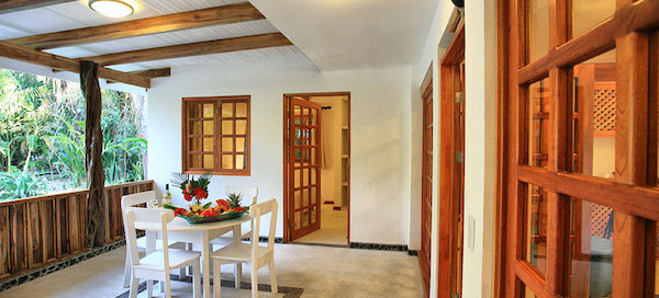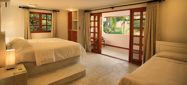 Our Standard Rooms are set amid lush tropical gardens on the north end of the property. Each room has a private porch with hammocks and layback chairs. Some rooms have one king-sized bed and one or two single beds, while others have one queen bed and one single bed.