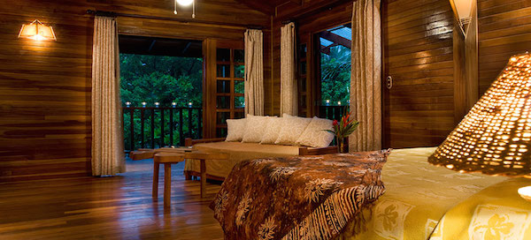 Our Garden View Bungalows are surrounded by abundant tropical gardens under a picturesque forest canopy. Each comfortable stand-alone bungalow is furnished with 2 queen beds and one single bed, with an artistically-designed private bathroom. All have private porches with hammocks and layback chairs.